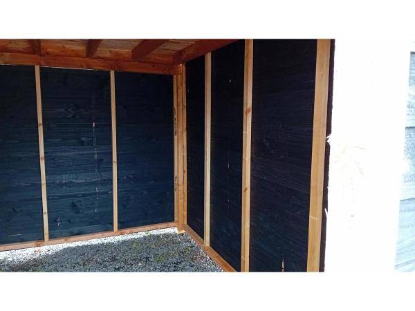 ✔ Moderne uitstraling – Wanden van zwart geïmpregneerd Zweeds rabat, onderhoudsvriendelijk en duurzaam.
